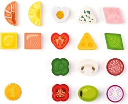 Enthält verschiedene farbenfrohe und abnehmbare Zutaten wie Pilze, Paprika und Käse, die den Kindern ermöglichen, ihre eigenen einzigartigen Pizzen zu kreieren.