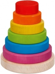 Der Holzstapel-Turm Regenbogen ist ein ideales Spielzeug für Kleinkinder, das Spaß und Bildung kombiniert. Die Holzringe werden von der größten bis zur kleinsten auf einen Stab gesteckt, was nicht nur die Feinmotorik fördert, sondern auch Geduld und das Lösen komplexerer Aufgaben.