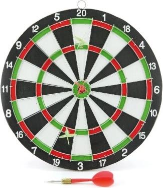 Unterhaltsames Set für Zielgenauigkeitstraining und Familienduelle: Dartscheibe mit einem Durchmesser von 28 cm mit 4 Pfeilen in zwei Farben. Ideal für die Freizeit zu Hause und im Ferienhaus, geeignet ab 14 Jahren.