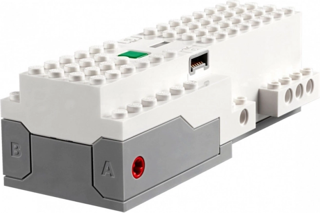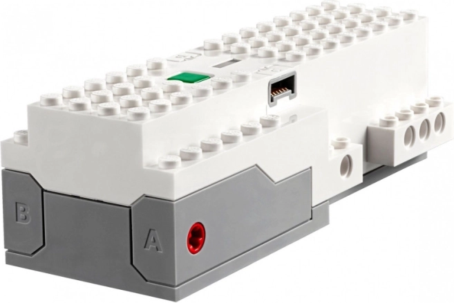- Verfügt über zwei Ein-/Ausgabeanschlüsse, zwei integrierte Positionsmotoren, einen integrierten Neigungssensor, ein Verbindungskabel und einen Stecker für Lego Powered Up-Elemente.