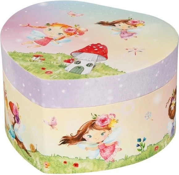 Dieses bezaubernde Schmuckkästchen im Stil einer Spieluhr vereint ein magisches Design mit praktischem Stauraum. Beim Öffnen des Deckels ertönt die bekannte Melodie Schwanensee und ein kleines Feenfigürchen beginnt sich vor dem Herzspiegel zu drehen. Die Box ist ein wunderbares Geschenk für Kinder, die Schmuck und märchenhafte Motive lieben.