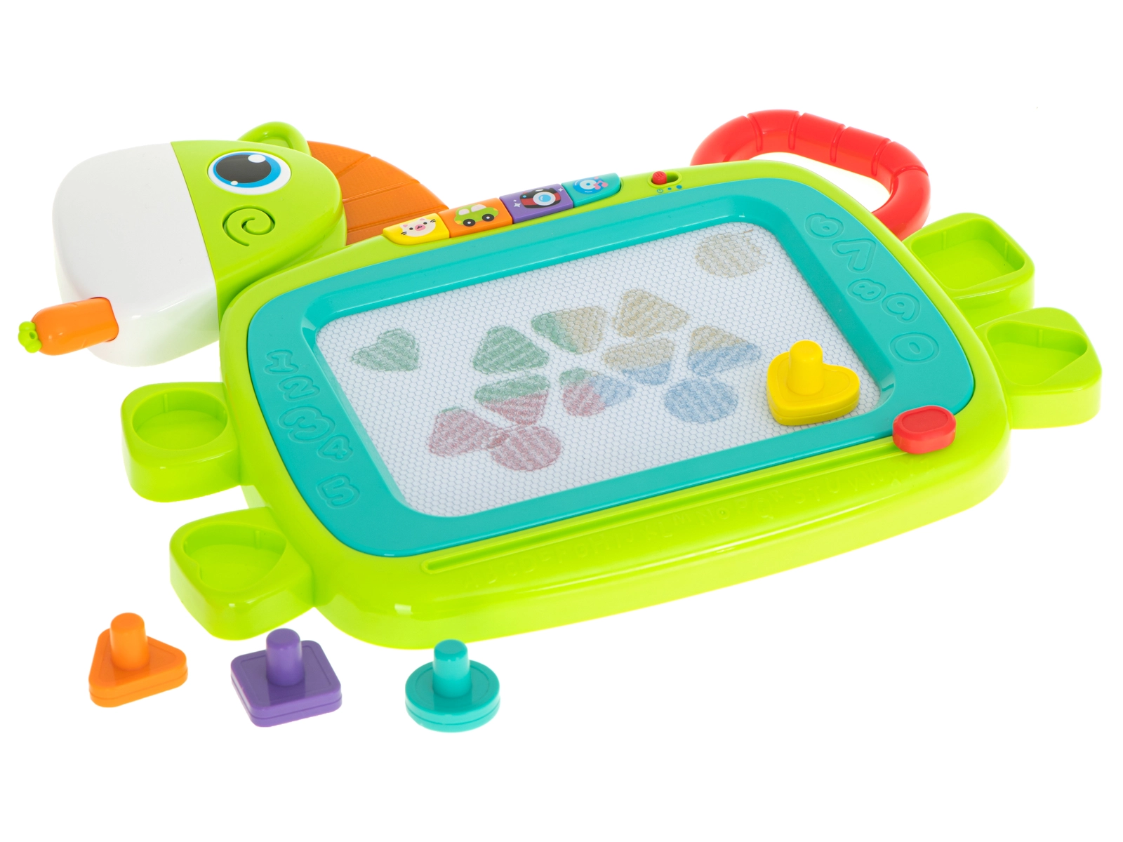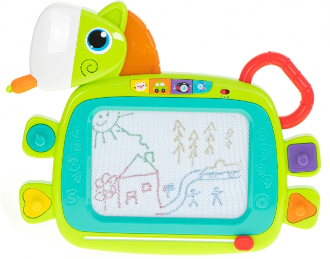 Die magnetische Tafel von HOLA ist eine großartige Wahl zur Förderung von Kreativität und Feinmotorik. Dank vier Farbbereichen entstehen Bilder in Farben, die Kindern Freude machen. Mit einem Zug am Schieberegler wird die Fläche gelöscht und ist bereit für neue Ideen. Die Pferdeform mit leuchtender Mähne und fröhlichen Geräuschen motiviert zum Spielen.