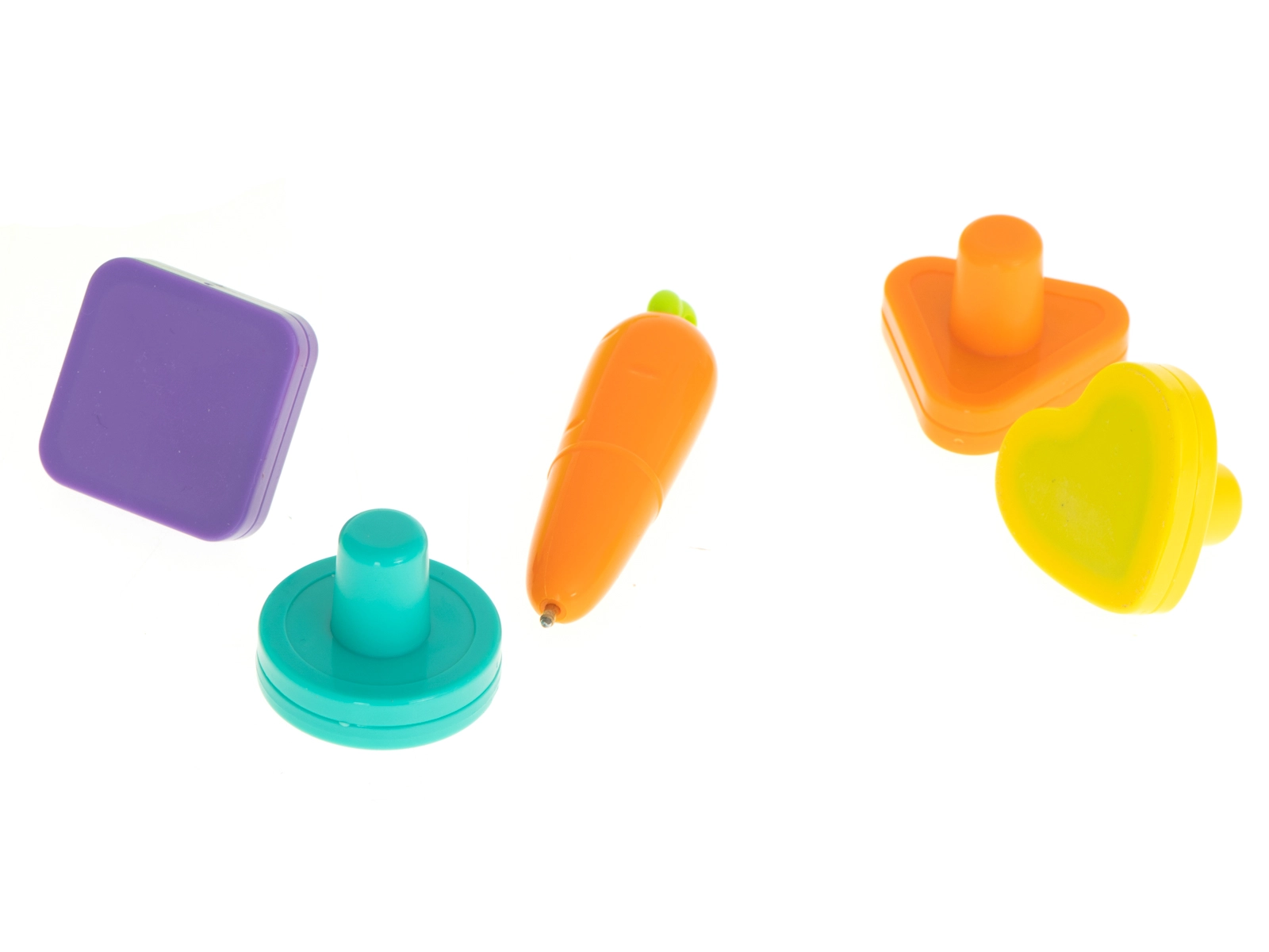 - Stift und 4 Stempel mit eigenem Aufbewahrungsplatz