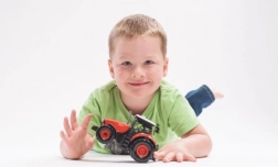 Sound- und Lichteffekte fördern die Vorstellungskraft der Kinder: Es ertönen Rückwärtsfahrt, Hupe und Motorstart per Knopfdruck. Das Spielzeug ist sofort einsatzbereit, denn die Batterien sind im Lieferumfang enthalten.