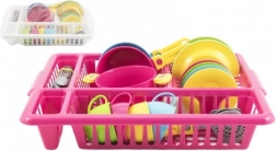 Nach dem Spielen wird das Geschirr einfach in das Abtropfgestell einsortiert. Kinder verinnerlichen spielerisch Aufräumen und Organisation.