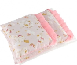 Das praktische Puppenset enthält alles, was man für einen bequemen Schlaf braucht: eine flauschige Bettdecke, ein weiches Kissen und eine Unterlage. Dank der sanften Materialien und der verspielten Motive passt es in jedes Kinderzimmer und fördert Vorstellungsvermögen und Rollenspiel.