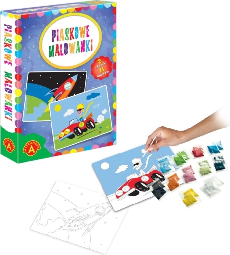 Entdecken Sie die Magie der Sandkunst mit dem Set Auto und Rakete. Dank vorgedruckter Motive und selbstklebender Flächen erstellen Kinder mühelos wunderschöne Illustrationen – auch ohne Vorkenntnisse. Die Arbeit mit farbigem Sand macht Spaß, spricht die Sinne an und fördert zugleich die Präzision der Bewegungen.