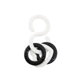 Verbindbare Silikonringe mit Relief massieren das Zahnfleisch, fördern den Tastsinn und ermöglichen leichtes Greifen. S-Haken befestigen Spielzeuge am Kinderwagen oder am Autositz.