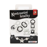 Geschenkset mit kontrastreichen Spielzeugen in elegantem Schwarz-Weiß für Babys ab 0 Monaten. Unterstützt die Entwicklung des Sehvermögens, die Feinmotorik und beruhigt beim Zahnen. Enthält sichere, leicht zu greifende Elemente ohne scharfe Kanten und ohne Kleinteile. Visuelle Stimulation, ergonomische Formen, sichere Materialien, Rassel und Beißring in einer praktischen Verpackung.