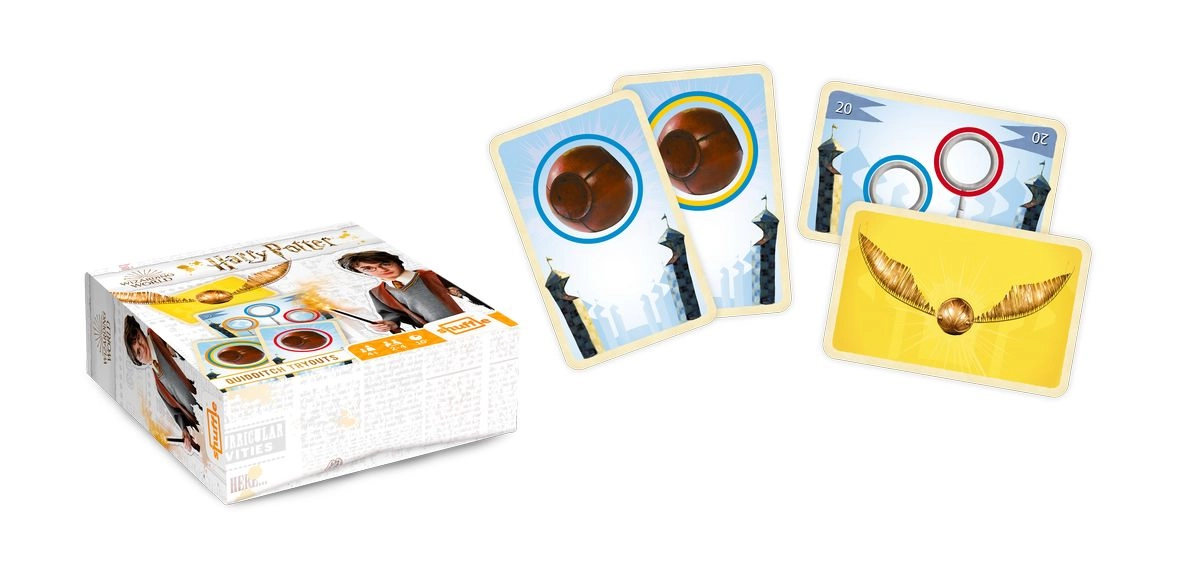 Betretet das Quidditch-Feld und werdet Hausmeister! In diesem flotten Spiel Quidditch Tryouts von Shuffle legt ihr eure Karten an Ringkarten an, reagiert blitzschnell auf Farben und versucht, eure Gegner auszutricksen. Nachdem alle Ringkarten gespielt wurden, gewinnt der Spieler mit dem höchsten Score – vielleicht ein neuer Spieler von Gryffindor!