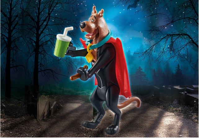 Diesmal hat Scooby keine Angst – er hat den Umhang angelegt und sich in einen Vampir verwandelt, um einen bösen Geist zu vertreiben. Kinder erleben viele Geschichten dank der detailreich gestalteten Figur und der thematischen Accessoires, die Fantasie und Rollenspiel fördern.