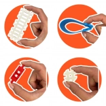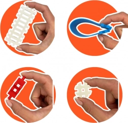 Das sichere, angenehme und leicht flexible Material liegt komfortabel in der Hand und hält dem täglichen Spiel stand. Der Baukasten ist in einer stabilen Kartonschachtel verpackt, enthält eine Anleitung für die ersten Inspirationen sowie einen speziellen Beutel für die Reinigung in der Spülmaschine, damit die Bausteine stets sauber bleiben. Hervorragend geeignet für alleinigen oder gemeinsamen Spielspaß.