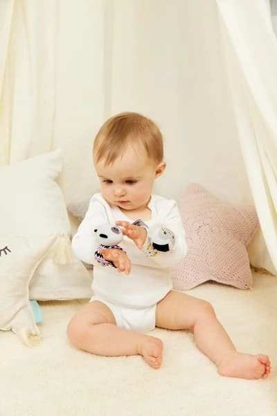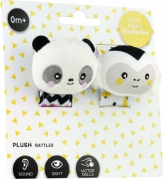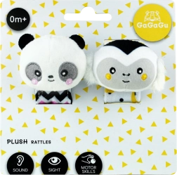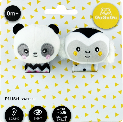Entdecken Sie die niedliche Handgelenk-Rassel mit Affen- und Panda-Motiv, die die Sinne des Babys anregt und die natürliche Entwicklung unterstützt. Kontrastreiche Muster ziehen die Blicke auf sich und der weiche Rasselklang ist angenehm und unaufdringlich. Dank des verstellbaren Klettverschlusses sitzt die Rassel bequem am kleinen Händchen, zudem kann sie wie ein gewöhnliches Spielzeug gehalten werden.