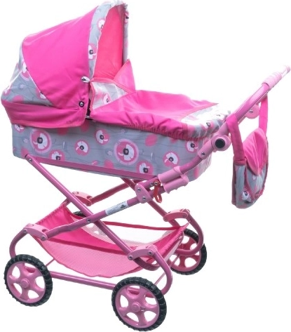 Gönnen Sie Ihren Kindern Spaß mit diesem stylischen Kinderwagen für Puppen. Dank des leichten Metallrahmens und den größeren Rädern bietet er einfache Handhabung und eine sanfte Fahrt. Der Kinderwagen verfügt über eine Wanne mit Beindecke, einen Korb und eine praktische Wickeltasche.