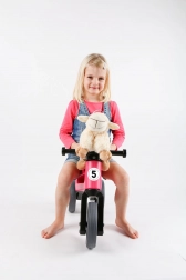 Aus robustem, gesundheitlich unbedenklichem Kunststoff, mit begrenztem Lenkeinschlag und verbreiterten Griffenden zum Schutz kleiner Fahrer. Die Pflege geht schnell – lauwarmes Wasser und Seife genügen.