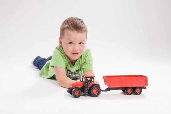 Entdecken Sie die Welt der landwirtschaftlichen Technik mit dem Zetor Traktormodell, das so gestaltet ist, dass es dank seiner realistischen Funktionen maximalen Spaß bietet. Dieser Traktor sieht nicht nur echt aus, sondern gibt auch echte Geräusche ab und hat funktionierende Lichter. Der Anhänger kann einfach abgekoppelt werden, was variantenreiches Spiel und die Entwicklung der Fantasie ermöglicht.