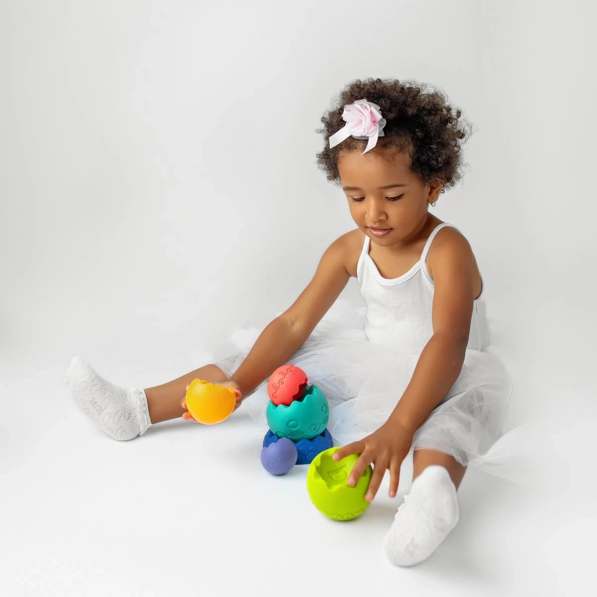 Die Teile lassen sich zu einem Turm stapeln, ineinander stecken und für erste Zählübungen verwenden. Visuelle und haptische Reize fördern auf natürliche Weise die Entwicklung kognitiver Fähigkeiten.