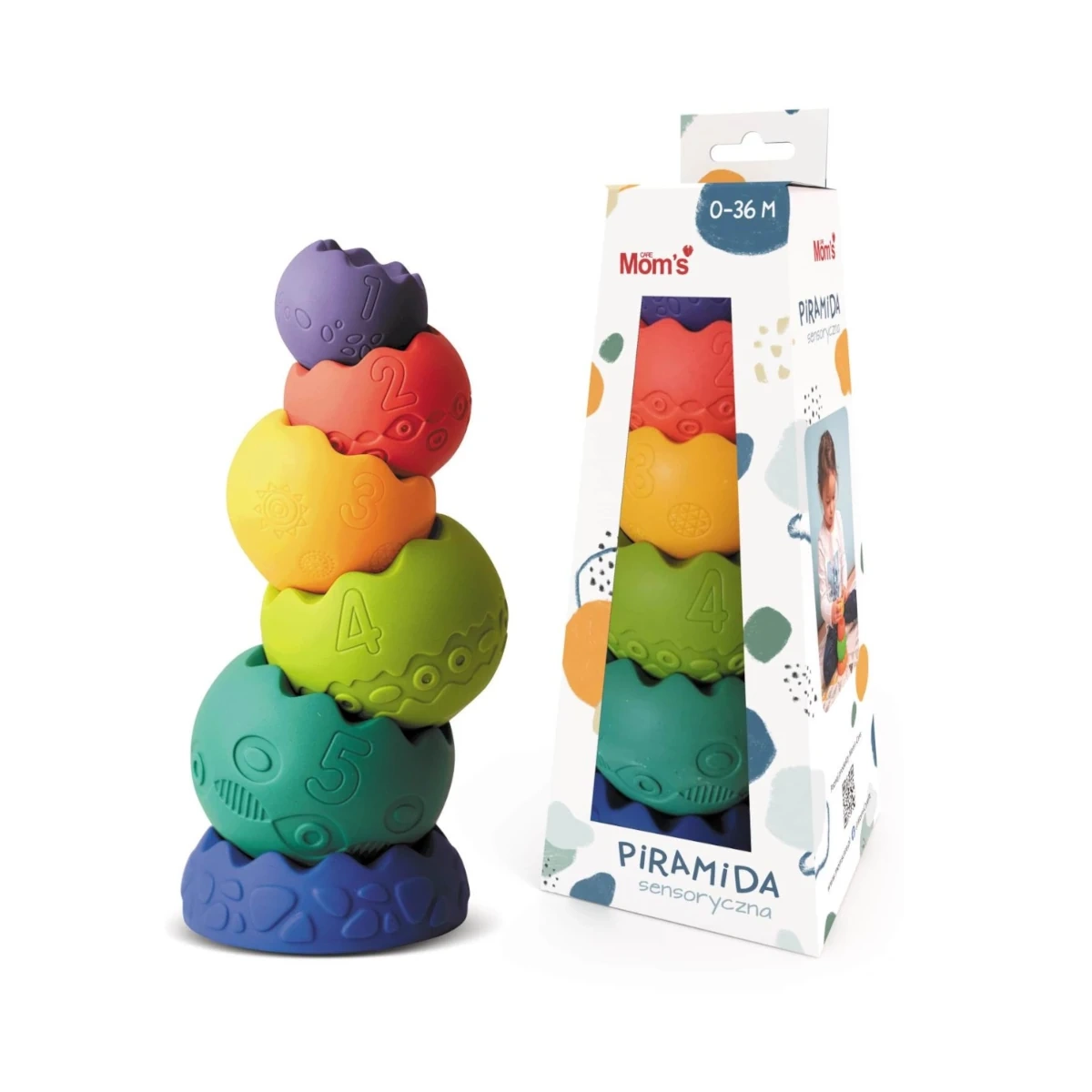 Die sichere Ausführung aus weichem, schadstofffreiem Material ist ideal für die Kleinsten. Das Spielzeug unterstützt außerdem das Lernen von Zahlen und das erste Erkennen von Formen – eine perfekte Grundlage für frühe Bildung und sensorische Entdeckungen.
