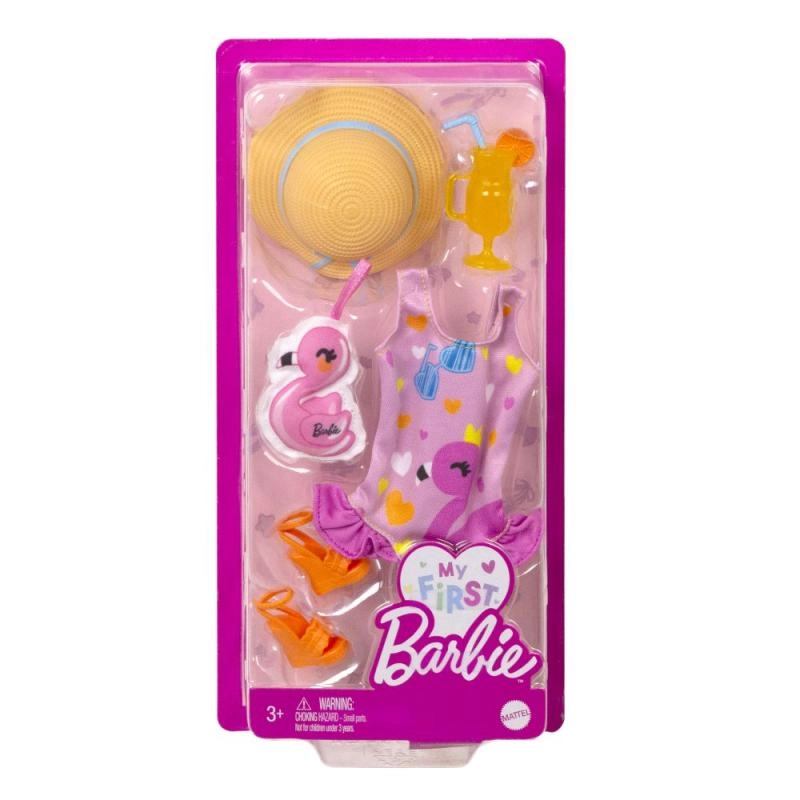Die stylischen Sets Meine erste BARBIE sind speziell für Vorschulkinder entworfen – mit leichtem Klettverschluss, weichen Accessoires und niedlichen Motiven wie Strand, Ballett, Geburtstagsfeier oder Schlafenszeit. Jedes Set enthält ein Outfit, ein Mode-Accessoire, ein weiches Plüschelement, ein Story-Accessoire und ein Paar Schuhe. Die Puppe ist nicht im Lieferumfang enthalten.