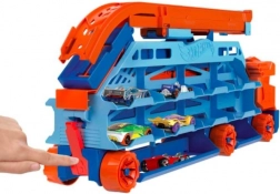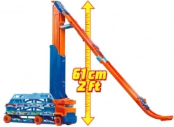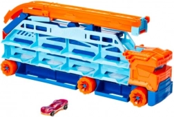 Erleben Sie doppelte Action mit einem Transporter, der sich in eine Gravitationsbahn verwandelt! Das große Fahrzeug auf sechs massiven Rädern transportiert und verstaut die ganze Sammlung sicher und wird mit nur einem Handgriff zu einer 60-cm-Abfahrt für adrenalingeladene Rennen.