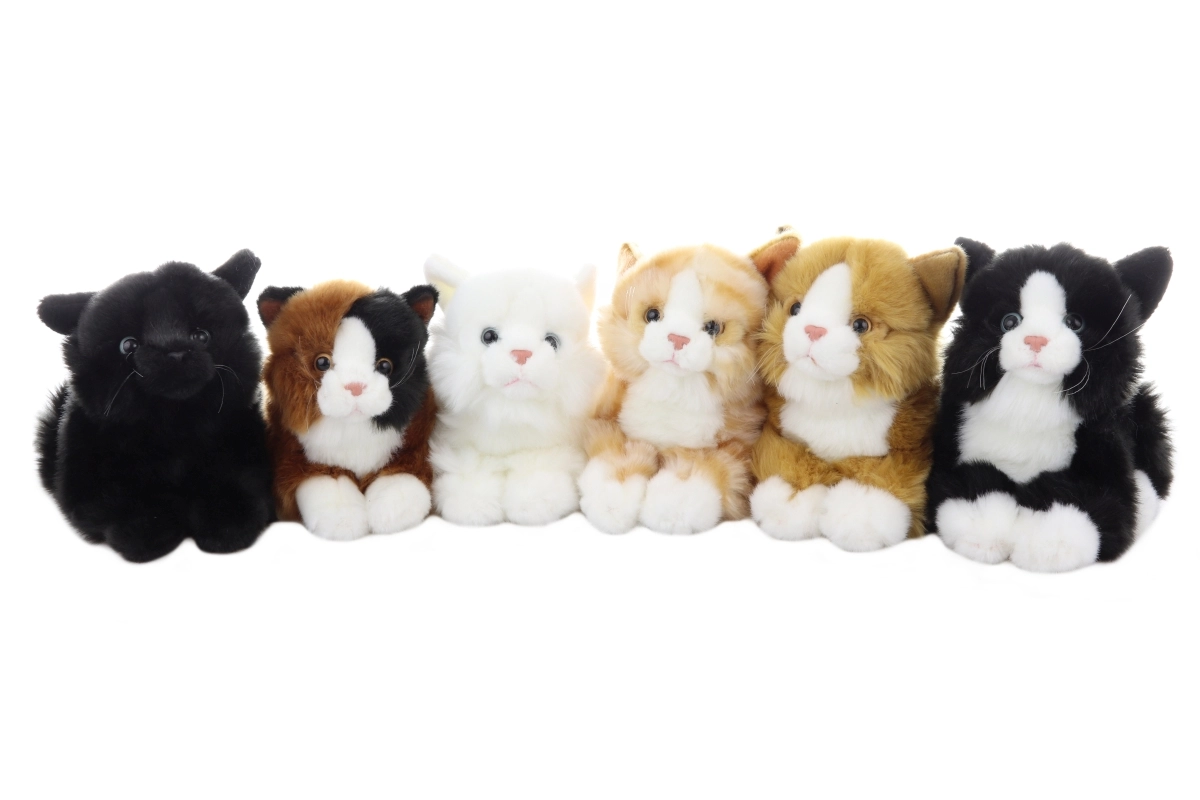 Plüschkatze mit einer Größe von ca. 30 × 15 × 13,5 cm (inklusive Schwanz). Alter 0+