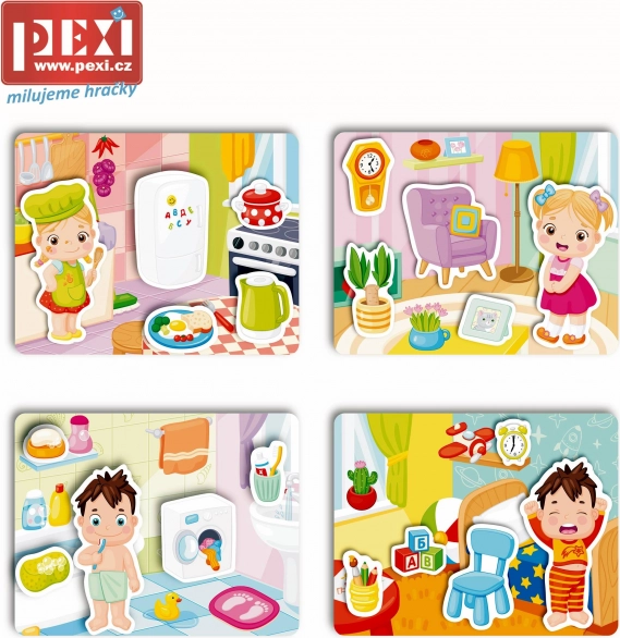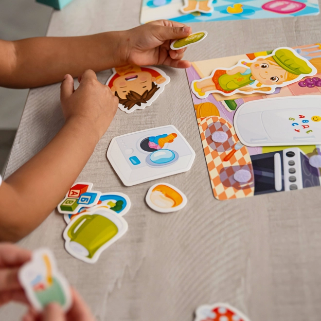 Die Velcro-Puzzles Zuhause machen Kinder spielerisch mit Alltagsgegenständen und deren richtiger Platzierung im Haushalt vertraut. Dank flexibler Kunststofftafeln und Klett-Teilen ist die Handhabung einfach und sicher. Die spezielle Oberflächenbehandlung ist angenehm zu berühren und unterstützt das selbstständige Spielen.