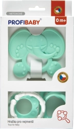 Dieses Set in Pastellfarben wurde entwickelt, um Babys beim Zahnen sicher Linderung zu verschaffen und gleichzeitig ihre Sinne zu fördern. Leichte Materialien und glatte Formen sind sanft zu Mund und Zahnfleisch, liegen gut in der Hand und unterstützen die Feinmotorik.