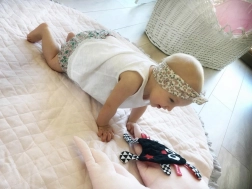 Kuscheliges Minky und unterschiedliche Oberflächen fördern die taktilen Eindrücke. Die leichte Konstruktion und abstehende Elemente unterstützen den Greifreflex und die Feinmotorik.