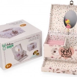 Beim Öffnen erklingt eine Melodie und die Ballerina dreht sich sanft vor dem ovalen Spiegel – ein bezauberndes Ritual bei jeder Schmuckaufbewahrung.