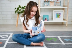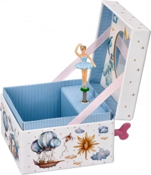 Diese Musikbox ist mit bezaubernden Illustrationen von Leuchttürmen, Ballons und Sternen verziert, die jedem Raum eine fantasievolle Note verleihen.
