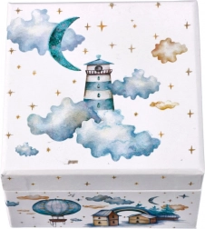 Die Box ist mit Motiven von Leuchttürmen, Ballons und Sternen mit romantischem Flair dekoriert, der jedem Raum eine märchenhafte Atmosphäre verleiht.
