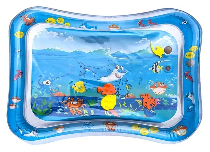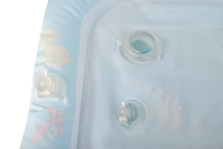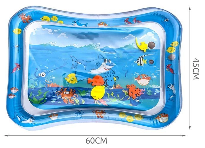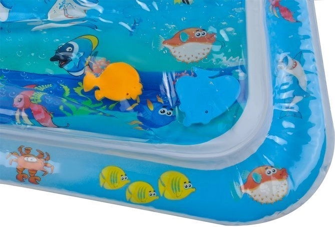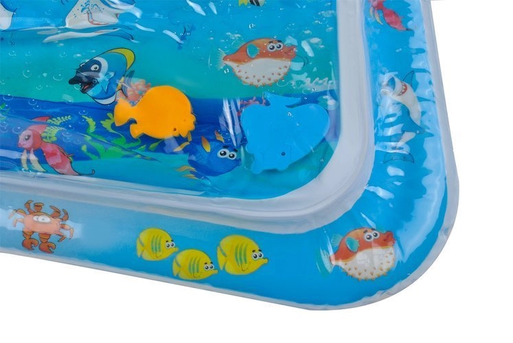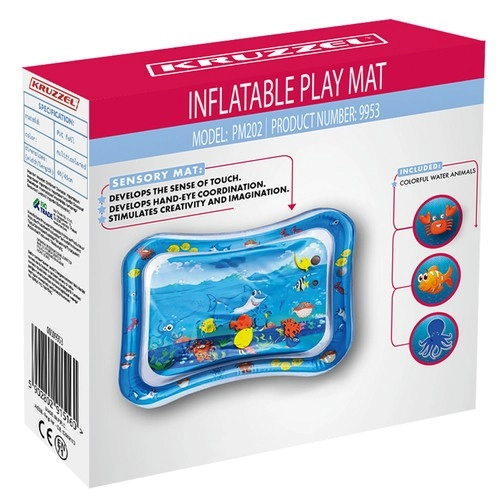 Aufblasbare Spielmatte für Kinder – Diese besondere Wasser-Spielmatte für Babys besteht aus hochwertigem Material, das außergewöhnliche Langlebigkeit gewährleistet. Den Rand der Matte kann man mit Luft aufpumpen und die Mitte mit Wasser füllen. Nach dem Zusammenlegen nimmt sie kaum Platz ein, sodass du sie auf Ausflüge oder Urlaubsreisen mit deinem Kind mitnehmen kannst. Innerhalb der Matte sind farbenfrohe Wassertiere, die sich durch die Bewegungen des Kindes verschieben. Die Reinigung ist sehr einfach: Ein feuchtes Tuch reicht aus, und die Matte ist sofort wieder einsatzbereit!