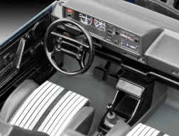 Das Set enthält ein Modell des deutschen Kompaktwagens VW Golf der ersten Generation, 6 Grundfarben, einen Pinsel und Klebstoff.