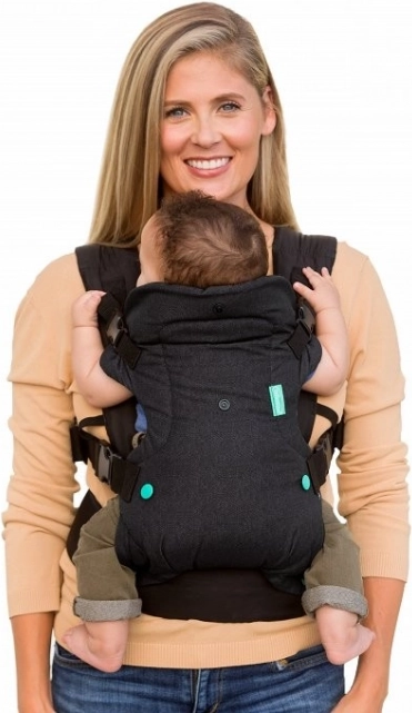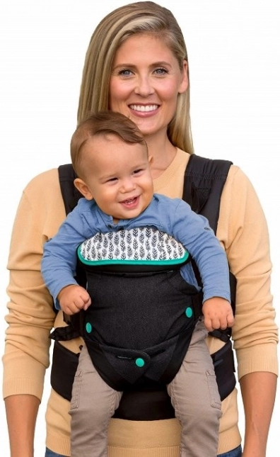 Infantino 4v1 schwarze Tragehilfe für komfortables Tragen von Kindern. Ergonomisch mit verstellbaren Gurten und Hüftgurt.