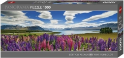 Die Szene mit Blumen, Bergen und dem türkisfarbenen Lake Tekapo besticht durch kräftige Farben und eine atemberaubende Komposition, die beim Puzzeln und auch nach der Fertigstellung Freude bereitet.