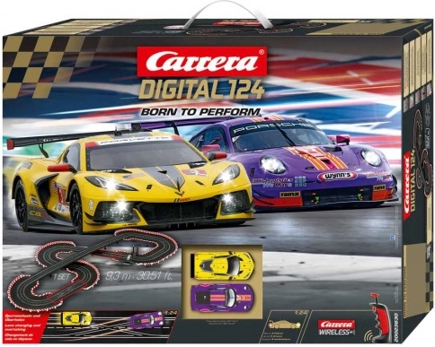 Starten Sie Ihre heimische Grand Prix auf Maximum mit der CARRERA DIGITAL 124 Slotcar-Bahn. Dieses Set mit einer Streckenlänge von 9,3 m bietet eine breite 1:24 Strecke, zwei detailreiche Modelle Porsche 911 RSR und Chevrolet Corvette C8.R, kabellose Handregler, die Möglichkeit zum Überholen und bis zu 4 Fahrer gleichzeitig. Genießen Sie eine digitale Rennsimulation mit Tanken, Zwischenzeiten und Ghost Car.
