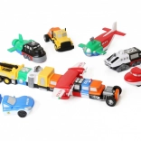 Alle Themen-Sets sind untereinander kompatibel, sodass Sie Module über die gesamte Kollektion hinweg kombinieren und Ihre Flotte erweitern können. Beim Bauen trainieren Kinder Kreativität, Handkoordination und logisches Denken. Drei Fahrzeuge mit Zieh-und-fahr (Pull-Back)-Antrieb sorgen für dynamische Fahrten und endlose Spielszenarien.