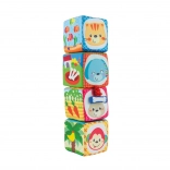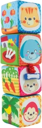 Der Stoffbezug und die Schaumstofffüllung sorgen für Leichtigkeit, Weichheit und Sicherheit beim Greifen und Bauen. Ideal für die ersten Versuche des Greifens und Stapelns.