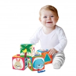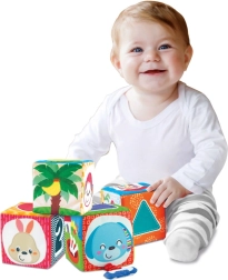 Dieses Set weicher Würfel ist für sicheres und anregendes Spielen bereits ab frühem Alter konzipiert. Dank vielfältiger Materialstrukturen und kontrastreicher Farben unterstützt es die Entwicklung der Sinne, die Hand-Auge-Koordination und erste kognitive Fähigkeiten. Fröhliche Tierillustrationen, Zahlen und geometrische Formen motivieren Kinder ganz natürlich zum Entdecken.