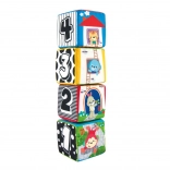 Die Würfel lassen sich zu einer Pyramide stapeln und zu thematischen Bildern verbinden – das stärkt die räumliche Orientierung und die Feinmotorik.
