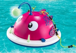 Das Spielset enthält eine schwimmende Insel in Form eines rosa Fisches mit lustigen Details, die Kinder begeistern werden.