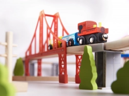 Der Bau und das Anordnen der Bahnen weckt die konstruktiven und räumlich-visuellen Fähigkeiten des Kindes. Mit Brücken, Pfeilern und städtischen Bauten können Kinder ihre eigene einzigartige Umgebung schaffen.