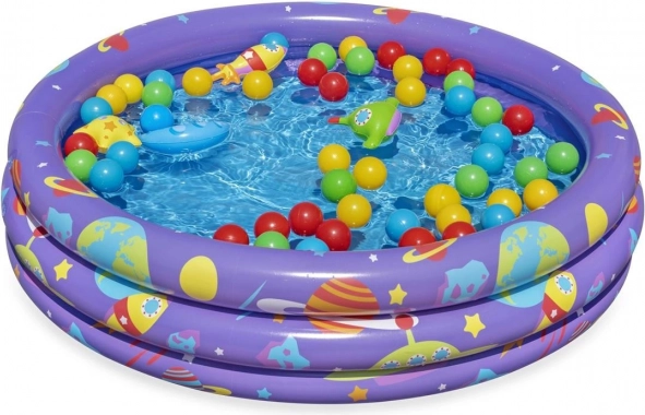 Dieser farbenfrohe Bestway-Pool Intergalactic wurde entwickelt, um Kindern nicht nur das Draußensein, sondern auch den Spaß im Wasser zu ermöglichen. Mit drei gleich großen aufblasbaren Ringen mit bunter Grafik und einer Kapazität von 140 Litern bringt er viel Freude.
