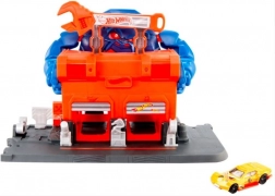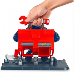 Mach dich auf zur Autowerkstatt und versuche, dein Auto zu reparieren – aber Vorsicht! Im Inneren lauert eine furchterregende Gorilla! Jedes Set lässt sich über das neue System mit anderen Hot Wheels City Sets verbinden und ist mit der orangefarbenen Bahn kompatibel.