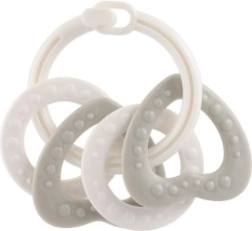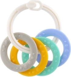 Geeignet für Kinder ab 3 Monaten, enthält dieses Beißring-Set bunte Plastikringe, die nicht nur leicht sind, sondern auch die Entwicklung der Feinmotorik unterstützen. Dank unterschiedlicher Strukturen und Formen bietet dieses Spielzeug mehr sensorische Anreize, die für die Zahnungsphase des Kindes geeignet sind.