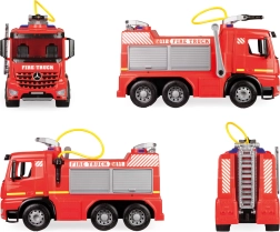 Die Kolbenpumpe und der 1,5-l-Tank erzeugen einen kräftigen Strahl für realistische Feuerwehreinsätze. Die drehbare Düse erleichtert das Zielen.