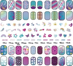 Farbige Lacke, künstliche Nägel und thematische Sticker für kreative Mixes – von Sternchen über Streifen bis hin zu Farbverläufen.