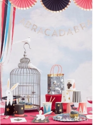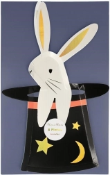 Entdecken Sie die bezaubernden Papierteller Abrakadabra der Marke MERI MERI, die Ihre Feier in eine magische Show verwandeln. Das Motiv des Hasen im Hut begeistert Kinder wie Erwachsene und passt perfekt zu einer Zauber- oder Zirkusparty. Dank sorgfältiger Verarbeitung und ansprechender Optik sind die Teller nicht nur praktisch, sondern auch dekorativ.