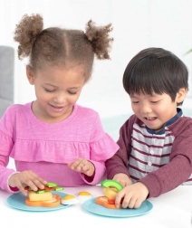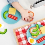 Frühstück im Zoo Set ist eine ideale Wahl für Kinder ab drei Jahren, die unbegrenzten Spaß erleben und neue Freunde aus der Welt des Zoos entdecken möchten. Das Spielzeug enthält insgesamt 16 Teile, darunter einen Toaster, zwei Teller, zwei Brotscheiben, Butter, vier Scheiben Avocado, zwei Eier, zwei Streifen Speck und ein Serviertablett.