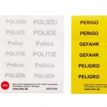 Wird mit photolumineszenten Aufklebern geliefert, die in mehreren Sprachen vor Gefahren warnen.